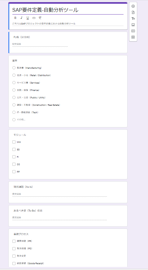 ✅ Googleフォーム(要件ヒアリング済み構成)